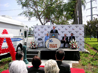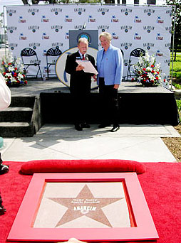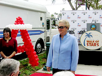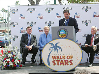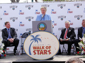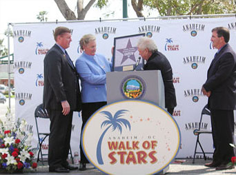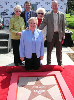 The city of Anaheim honored Gene Autry with a star on the Anaheim/Orange County Walk of Stars. Mrs. Autry accepted the star in honor of her husband who was recognized as Orange County's baseball pioneer.