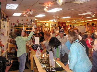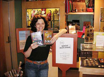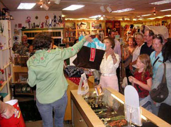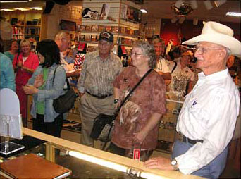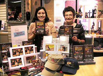 The Museum Store Sales Staff, Kristin and Elisabeth, show off the latest Gene Autry items.