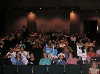 The Autry Museum's Associate Director of Education Laureen Trainer, and Gene Autry Entertainment's Karla Buhlman admire the raffle entries.