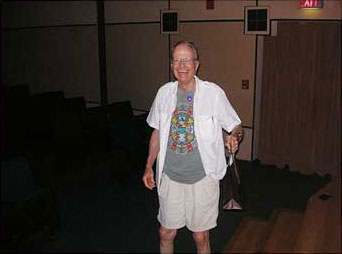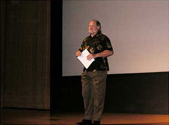 Michael talks about ranch life in front of a 1912 truck donated by Gene Autry.