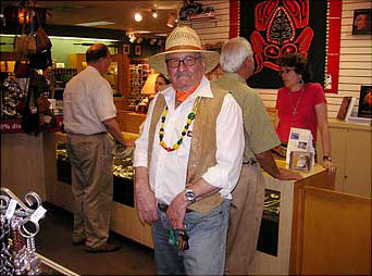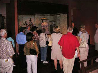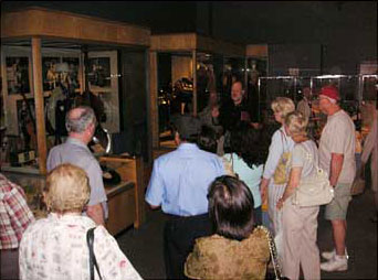 At the Charro case, Michael tells folks about the pre-war Mexican themes in Mexicali Rose.
