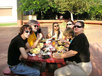 Sunglasses required for this table of happy diners.