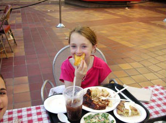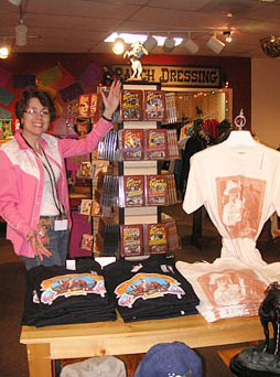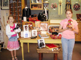 These young ladies practice their shopping skills at the Gene Autry display table in the museum store.