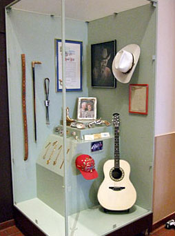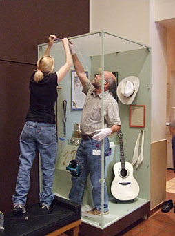 The Autry National Center's Curatorial and Exhibits team has Monte Hale's case ready in the museum's lobby.
