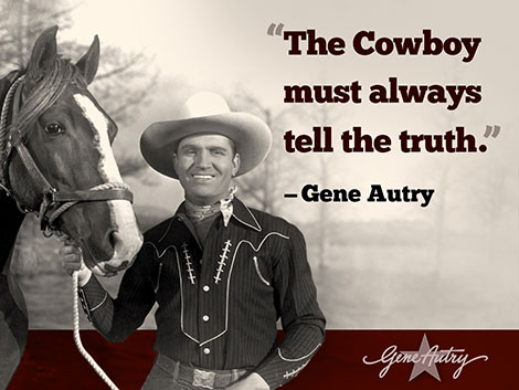 Author Holly George-Warren researched the origins of Gene Autry's Cowboy Code and wrote about it in her award winning book Public Cowboy No. 1: The Life and Times of Gene Autry. Gene's Ten Cowboy Commandments began to evolve from such Autry-related publicity as the item "Nine Cardinal Rules Govern Production of All Autry Films," which ran in the 1949 press book for Riders in the Sky. Read More