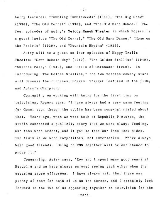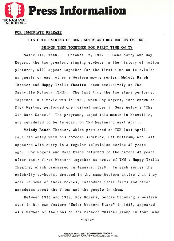 Historic Pairing of Gene Autry and Roy Rogers on TNN Brings them Together for the First Time On TV