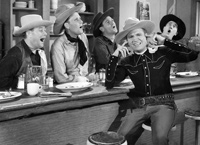 Gene sings "She'll Be Comin' Round the Mountain" and "Chiquita." Smiley Burnette sings "Don Juan of Sevillio" and with Gene sings "When the Campfire Is Low on the Prairie."