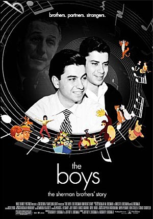 the boys: the sherman brothers' story is an intimate journey through the lives of Robert B. Sherman and Richard M. Sherman, the astoundingly prolific, Academy Award winning songwriting team that defined family musical entertainment for five decades. The feature-length documentary, conceived, produced and directed by two of the songwriters' sons, takes audiences behind the scenes of the Hollywood magic factory and offers a rare glimpse of a unique creative process at work. It also explores a deep and longstanding rift that has kept the brothers personally estranged throughout much of their unparalleled professional partnership.