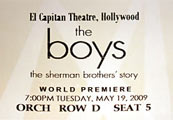 Karla Buhlman, President of Gene Autry Entertainment, saw a special screening of the boys at the El Capitan Theatre in Hollywood on May 19th. Guests were greeted by Disney characters who've sung the amazing songs written by Richard and Robert Sherman - Mary Poppins, Winnie the Pooh and Tigger, and Baloo and King Louie from The Jungle Book. Before the screening, Richard Sherman spoke and performed a selection of his songs on a grand piano. To see a songwriter perform his songs live is something special, and when the songs are A Spoonful of Sugar, Winnie the Pooh, and It's a Small World After All the experience is quite wonderful!