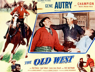 Every Gene Autry fan knows that his movies have music, comedy, and action as well as a lovely leading lady, a humorous sidekick, and of course Gene's horse Champion. Over time the key elements of his movies remained the same but with a different twist. Most notably the pre-World War II films, such as Public Cowboy No. 1 (1937) took place in contemporary times with humorous songs from sidekick Smiley Burnette and included a strong, independent leading lady. Post-war films like The Old West (1952) often took place in the past with fewer songs that often had a religious theme and the leading lady was in a more passive role. Little Champ even joins the World's Wonder Horse, Champion in this film. Our Double Feature this month will let you compare what is "the same but different" in these two popular Gene Autry B Westerns.
